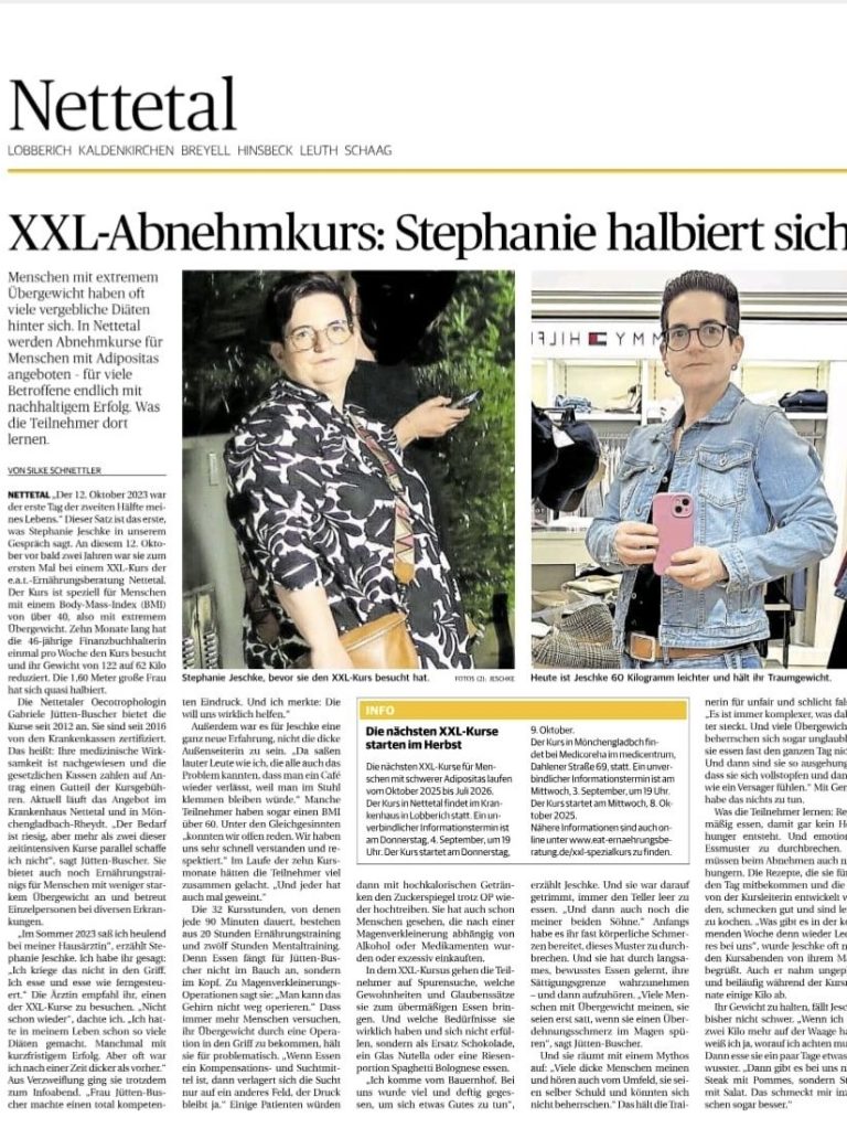 Meine Ärztin empfahl mir einen Ernährungskurs, der 10 Monate dauerte.